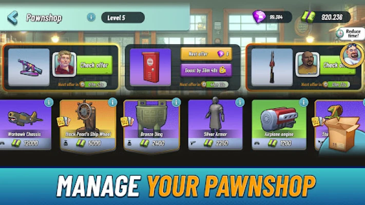 Parodykite savo išmanumą audringuose aukcionuose, kuriuose kiekvienas statymas gali atnešti neįtikėtiną lobį. Nuo paslaptingų sandėlių turinio iki retų antikvarinių vertybių – Jūsų įžvalga ir strategija lems sėkmę. Tapkite tikru kainų karo meistru, sumaniai derindami statymo taktiką ir darydami geriausius sandorius. Sėkmingai laimėję daiktus, valdykite savo lombardą, paversdami kiekvieną radinį pelninga investicija. Išvystykite smulkų verslą į milžinišką pelno imperiją, priimdami protingus sprendimus ir plečiant savo įtaką visame mieste.