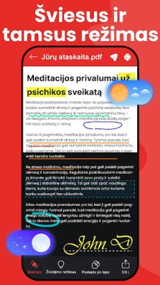 PDF skaitytuvas ir rengyklė – „Android" pdf peržiūros priemonė siūlo ne tik efektyvumą, bet ir pritaikomumą jūsų asmeniniams poreikiams. Pasirinkite patogiausią skaitymo režimą – ryškųjį šviesų arba ramesnį, akis tausojantį tamsųjį. Dokumentus galite peržiūrėti puslapis po puslapio, priartinti smulkias detales arba atitolinti vaizdą, kad apžvelgtumėte visumą. Dalinkitės svarbia informacija su kolegomis ar draugais per įvairias socialinės žiniasklaidos platformas arba tiesiogiai atsispausdinkite reikiamus dokumentus. Šis universalus įrankis yra jūsų patikimas partneris, užtikrinantis sklandų, lengvą ir produktyvų darbą su PDF failais kasdien.